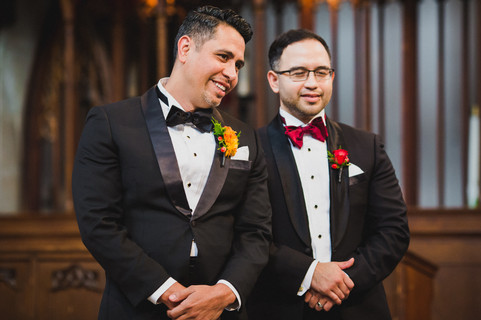 The Ceremony was hosted at the iconic Rockefeller Church on the University of Chicago campus. Guests were greeted with programs in both English and Spanish. Her older brother escorted Annette, and a seat was saved, with a photo, in honor of her late Father. The Ceremony was dual officiated with moments in both Spanish and English, and Annette's mom sang Ave Maria. The ceremony also included the Mexican traditions of El lasso (the wedding lasso) and Las arras matramoniales (the wedding coins) and the African tradition of jumping the broom.